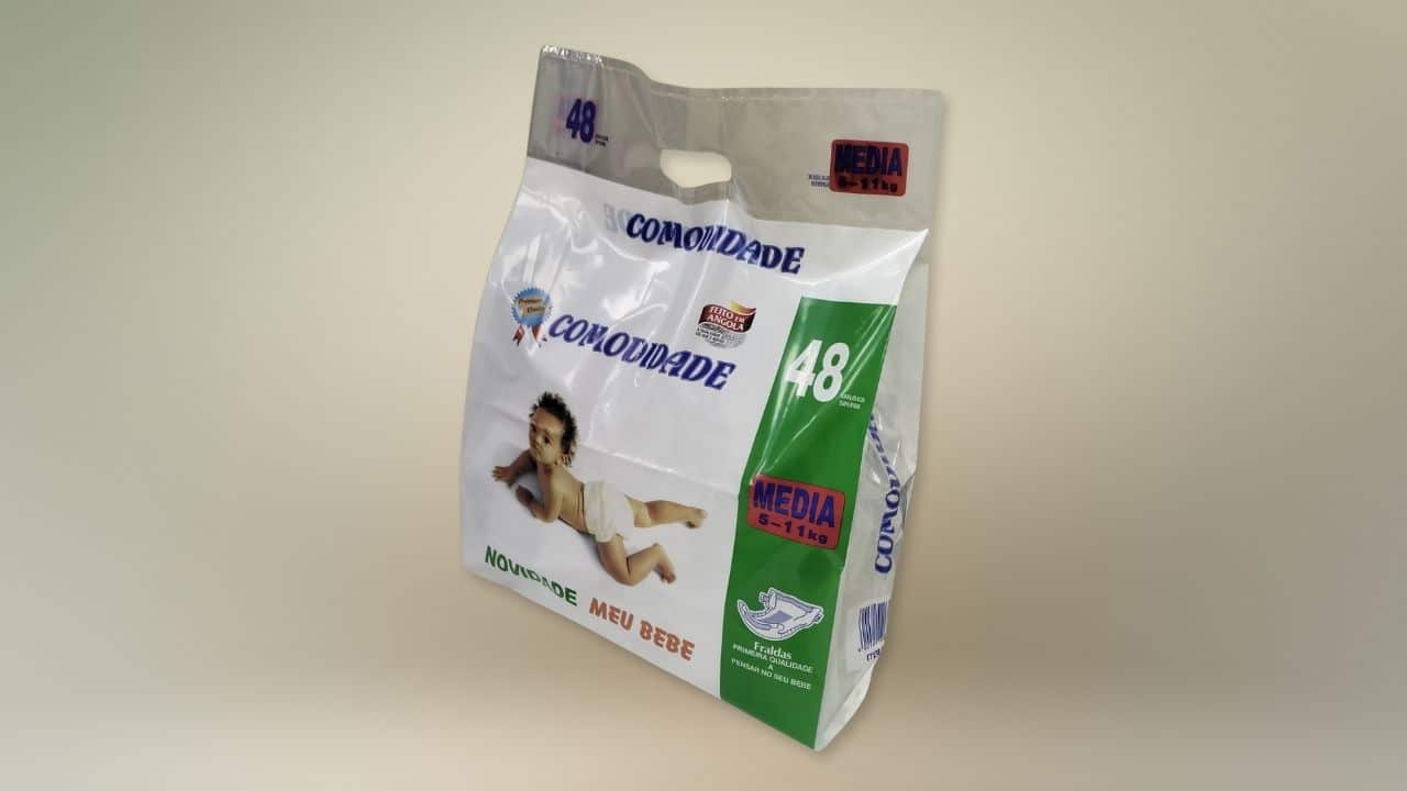 PE based perforated outer bags, with/without handle to pack multi sized diapers.
