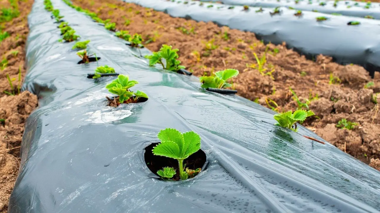 The mulch film is used to conserve the soil moisture which helps to suppress weed growth, regulate soil temperature and prevent water loss through evaporation.