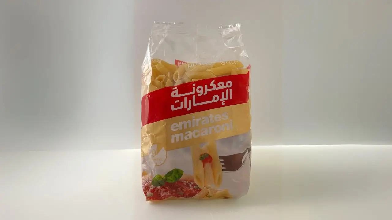 Printed film for pasta, macaroni and noodles suitable for high-speed packing.