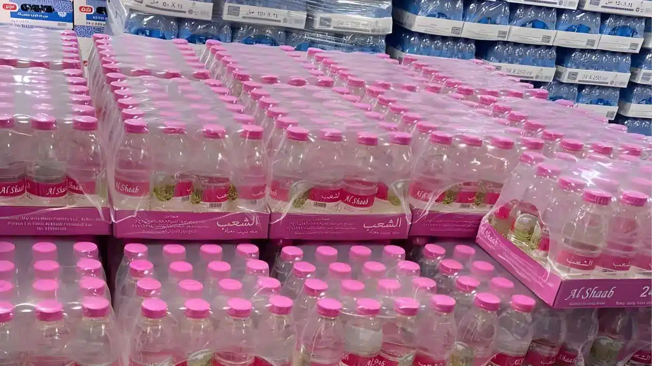 Water packing with PET cups. Coalition shrink film for water bottles.